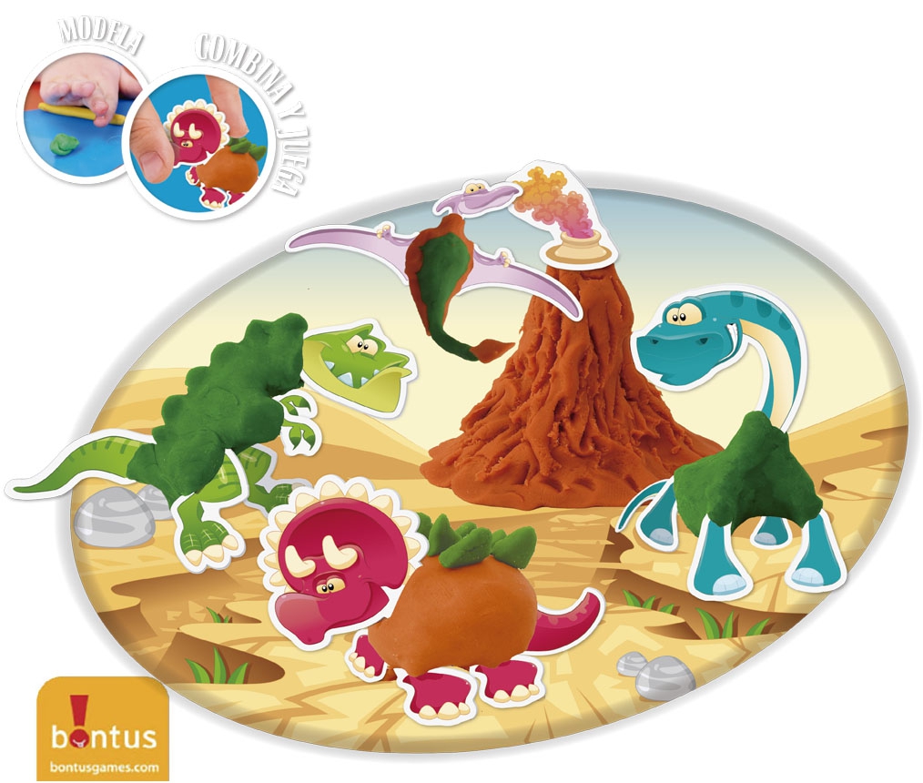 Armá tus propios dinosaurios con masa para modelar y placas de figuras guía. ¡Incluye una placa extra para armar divertidos marcianos!