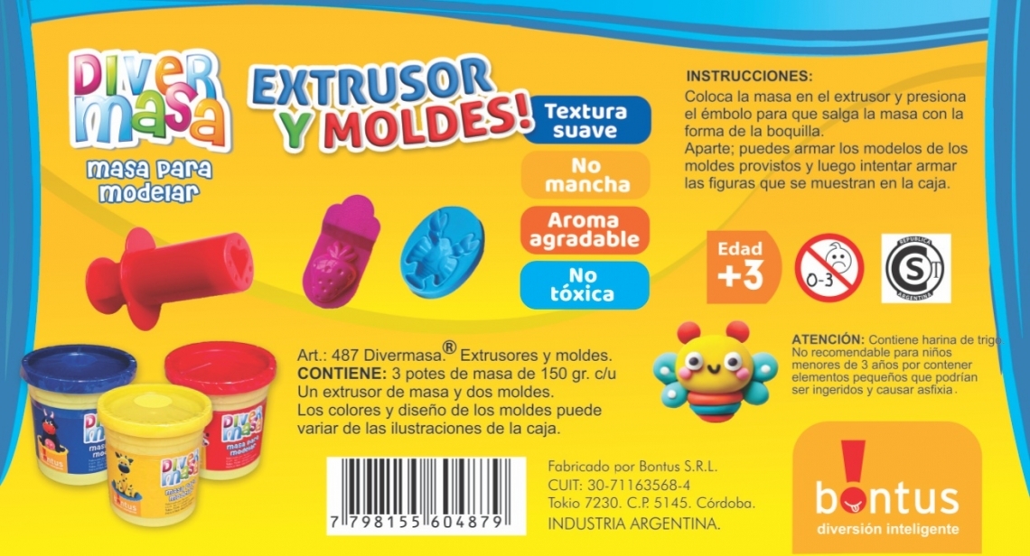 Con tres potes de 150 gramos de Divermasa de textura suave, aroma agradable y fórmula no tóxica que no mancha, los chicos tienen suficiente material para experimentar durante horas. Los dos moldes adicionales permiten crear figuras complementarias, y en la caja encontrarán modelos e ideas para armar creaciones cada vez más elaboradas.