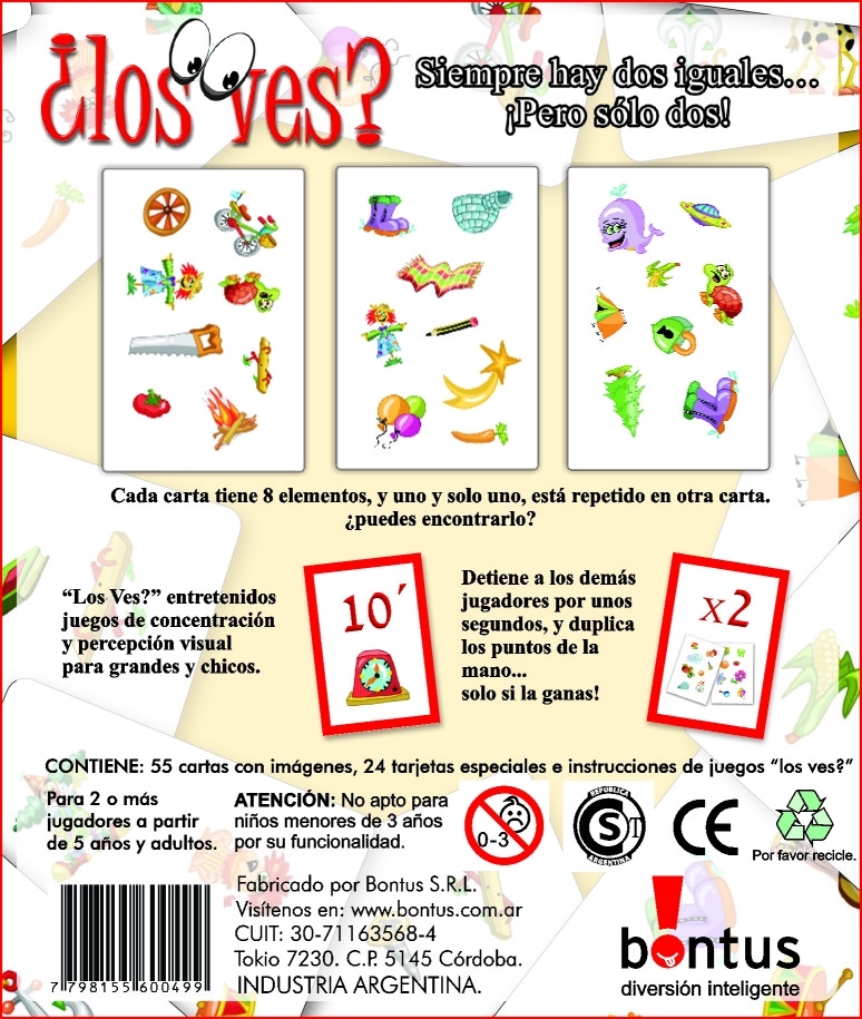 ¿Tenés ojos de lince? ¿Los Ves? es un adictivo juego de percepción visual y velocidad que pondrá a prueba tu capacidad de observación al máximo. La mecánica es tan simple como desafiante: cada carta tiene 8 elementos diferentes, y entre cualquier par de cartas siempre hay una, y solo una, imagen que se repite. Tu misión es encontrarla antes que los demás.