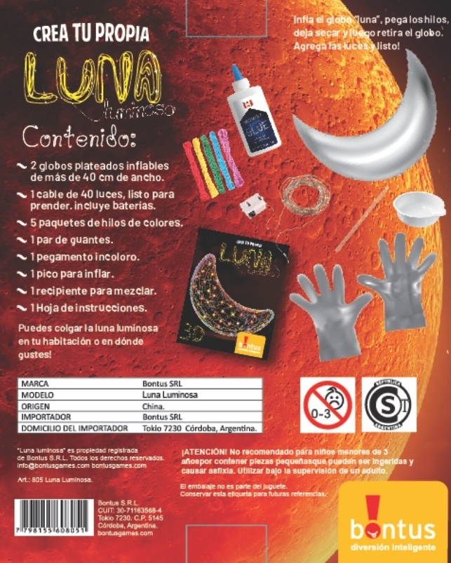 Inflá el globo luna, pegá los hilos de colores, dejá secar y agregá 40 luces LED. ¡Creá una hermosa luna luminosa para decorar donde quieras!